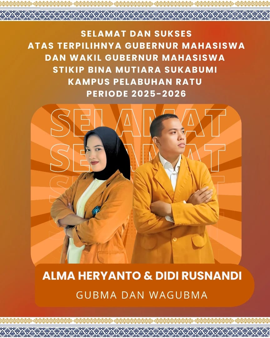 SUKABUMIANNEWS.ID – Alma Heryanto Putri, mahasiswi Program Studi Pendidikan Guru Sekolah Dasar (PGSD) semester 5, dan Didi Rusnandi, mahasiswa Program Studi Pendidikan Jasmani Kesehatan dan Rekreasi (PJKR) semester 3, resmi ditetapkan sebagai Gubernur Mahasiswa dan Wakil Gubernur Mahasiswa Badan Eksekutif Mahasiswa (BEM) STKIP Bina Mutiara Sukabumi Kampus Palabuhanratu untuk periode 2025–2026.
