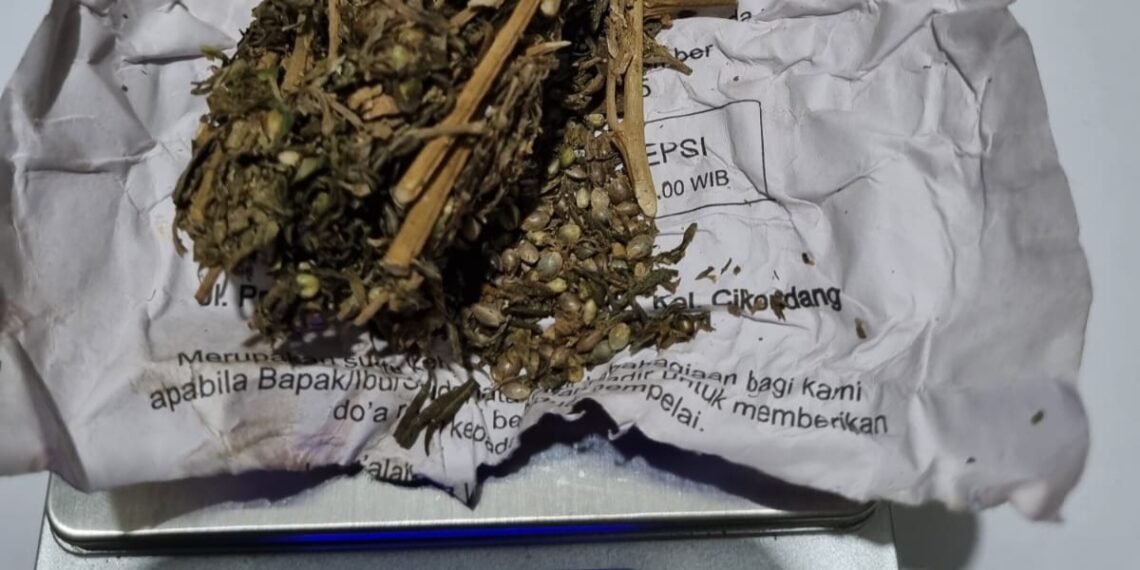 Dalam proses penggeledahan, petugas menemukan sejumlah barang bukti narkotika yang disimpan dalam plastik hitam. Dari tangan terduga pelaku, polisi mengamankan 13 butir ekstasi yang terdiri dari 8 butir berwarna hijau dan 5 butir berwarna pink dengan berat keseluruhan 5,63 gram. Selain itu, turut disita satu paket daun ganja kering seberat 13,47 gram serta satu unit telepon seluler yang diduga digunakan untuk berkomunikasi terkait transaksi narkoba.