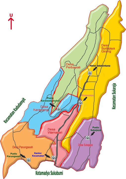 Daftar Desa: Terdiri dari 6 desa, yaitu Karawang, Perbawati, Sudajaya Girang, Sukajaya, Parungseah, dan Warnasari.