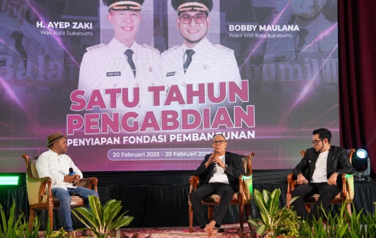 Ayep Zaki menyampaikan bahwa tahun perdana kepemimpinannya bersama Bobby Maulana menjadi periode strategis untuk merancang dan memperkuat dasar pembangunan Kota Sukabumi. Hal itu disampaikan dalam kegiatan refleksi bertema “Satu Tahun Pengabdian, Penyiapan Fondasi Pembangunan” yang berlangsung di Gedung Juang 45, Jumat (20/2) sore.