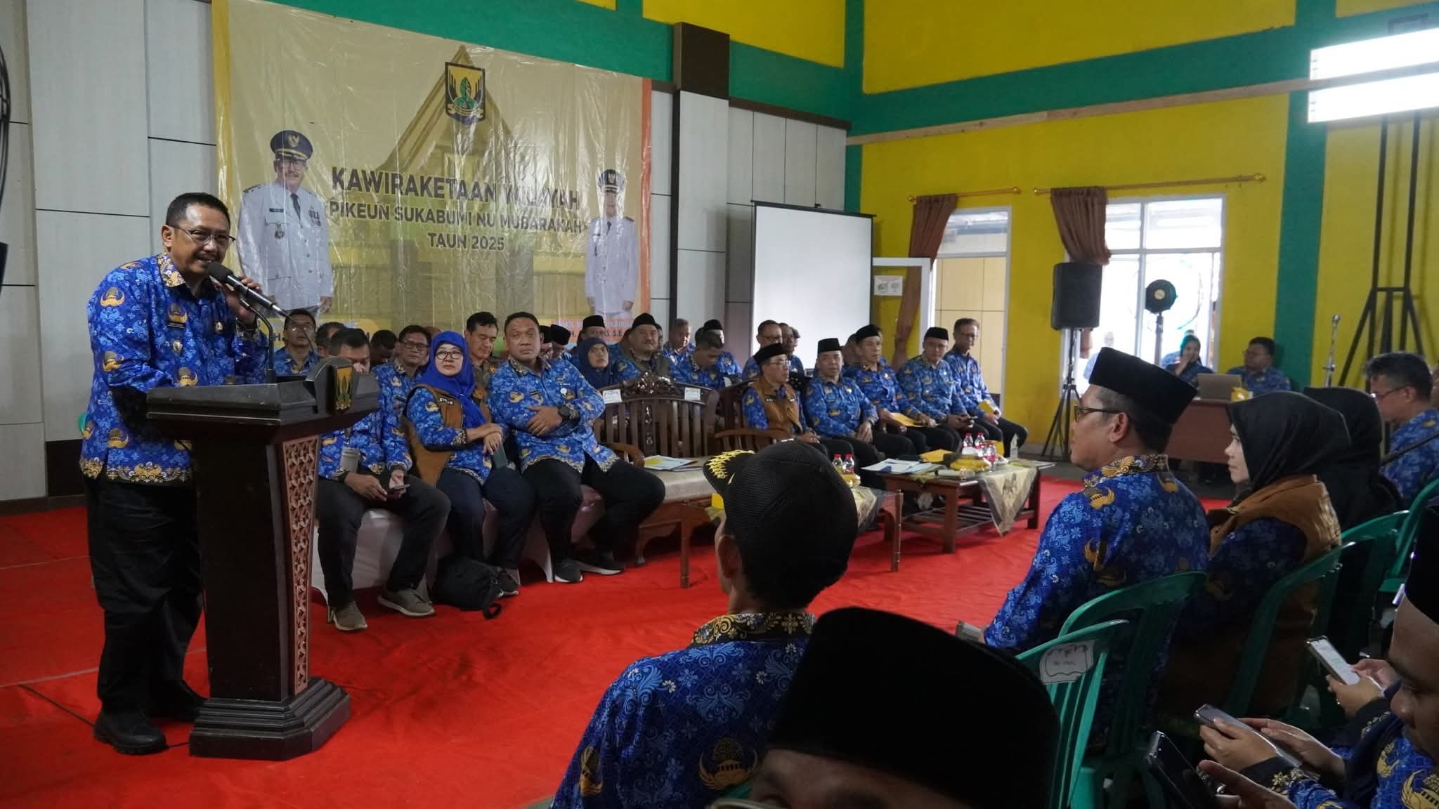 SUKABUMIANNEWS.ID – Bupati Sukabumi H. Asep Japar kumpulkan para kepala perangkat daerah hingga kepala desa (Kades) di Aula Desa Jampangtengah Kecamatan Jampangtengah, Senin, 17 November 2025. Hal itu dilakukan dalam rangka sinergitas kewilayahan 2025 sekaligus rapat dinas bulanan.